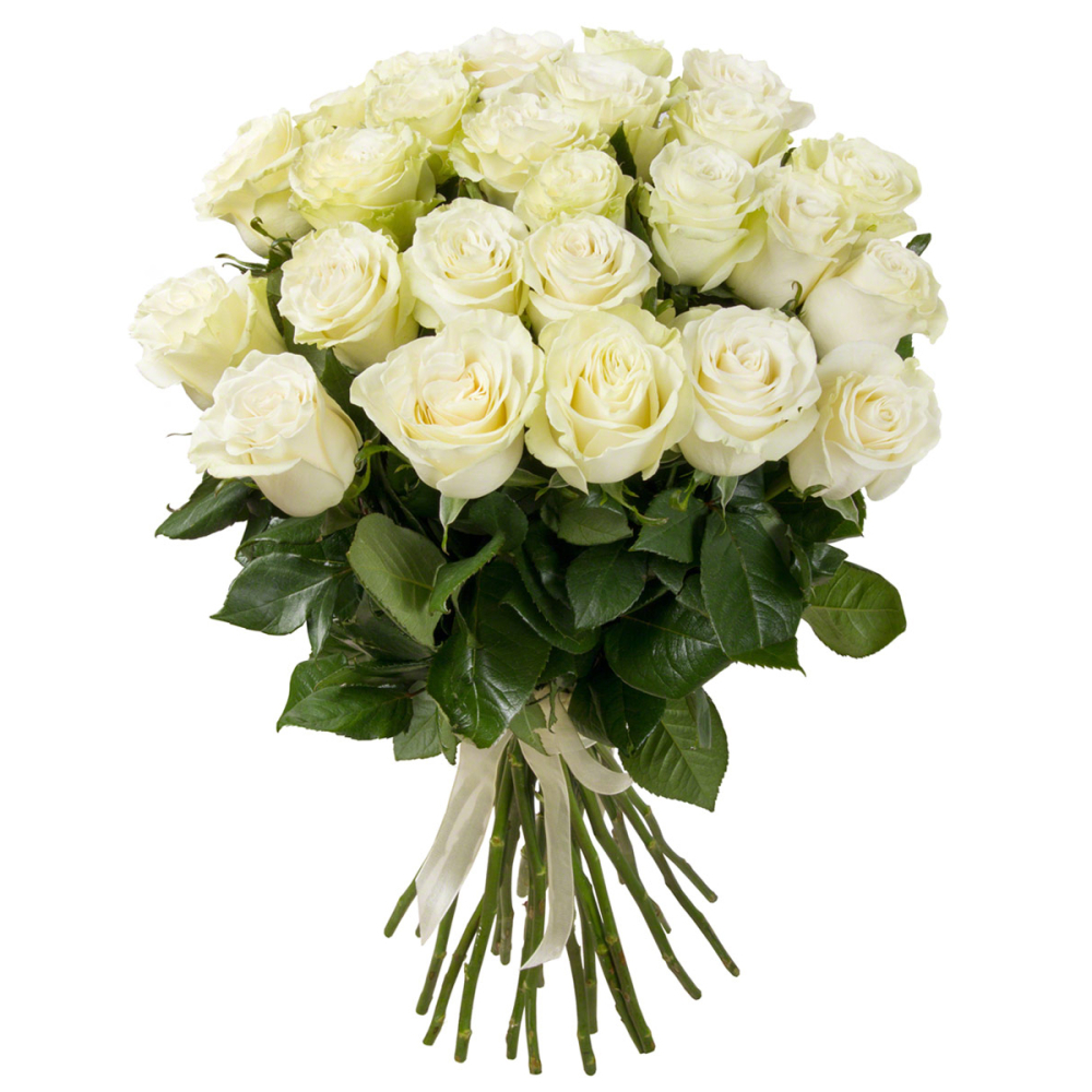 Букет из 25 белых роз – символ вечной чистоты и преданности