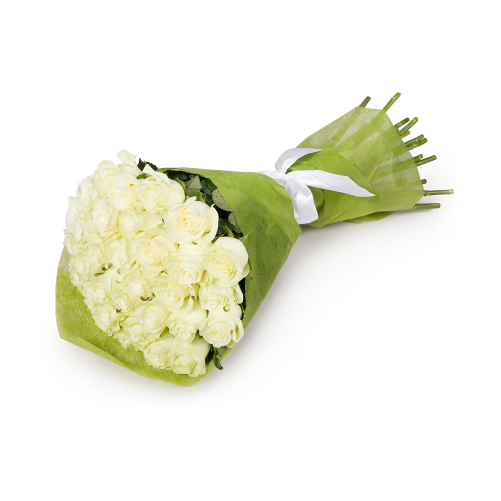 Букет из 35 белых роз в фетре