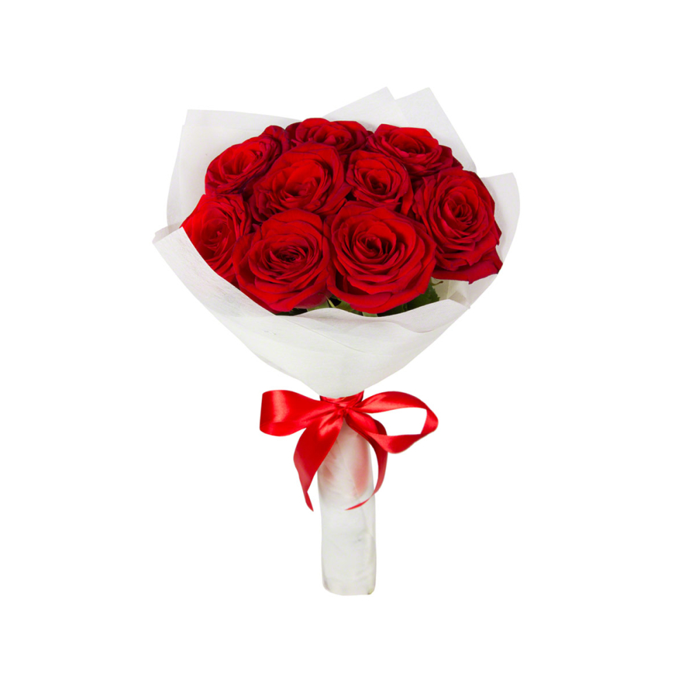 Букет из 9 красных роз с эвкалиптом – классика любви и нежности