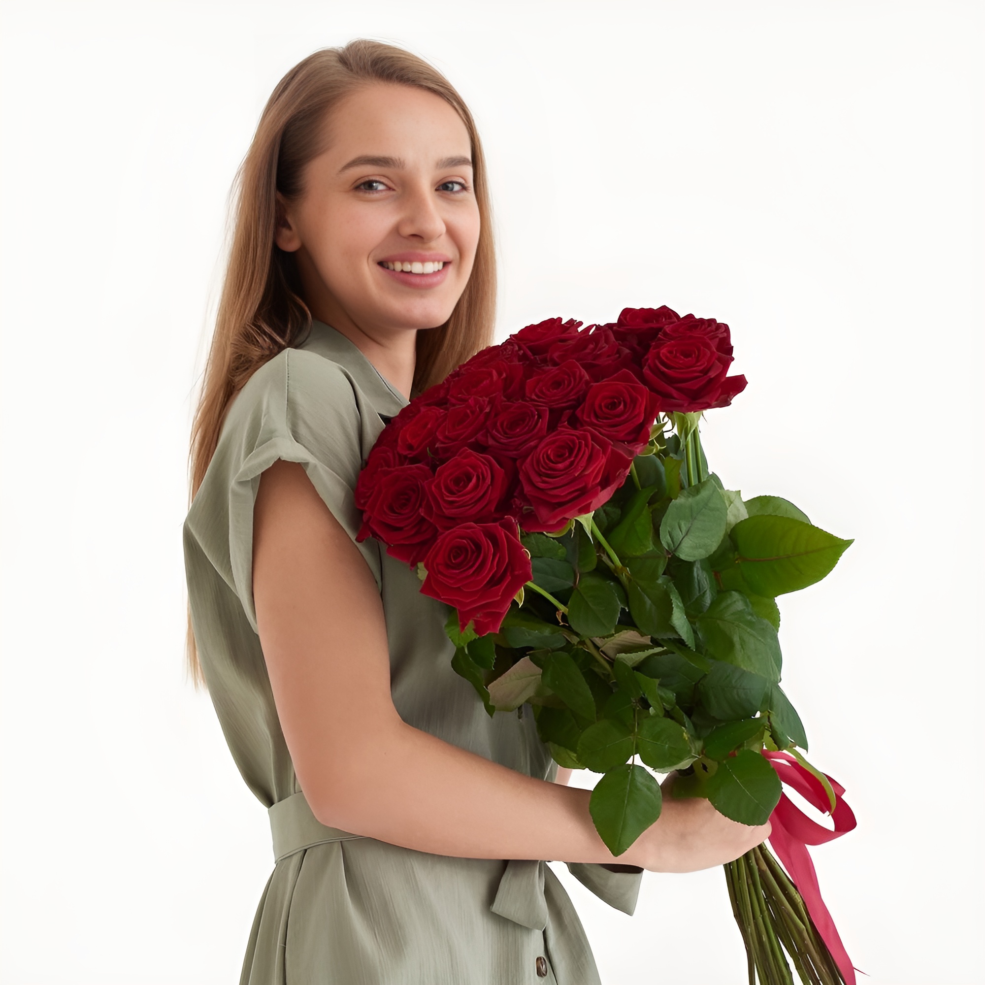 Элегантный букет из 21 красной розы — классический символ любви и преданности. Идеальный выбор для романтических признаний и особых моментов. Доставка цветов в день заказа.