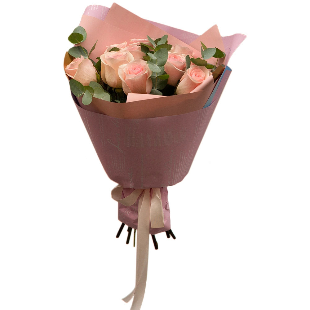 Изысканный букет из 9 нежно-розовых роз в обрамлении свежего эвкалипта — воплощение романтики и изящества. Идеальный выбор для признания в любви, свидания или просто чтобы подчеркнуть особые чувства. Доставка роз Чаплыгин.
