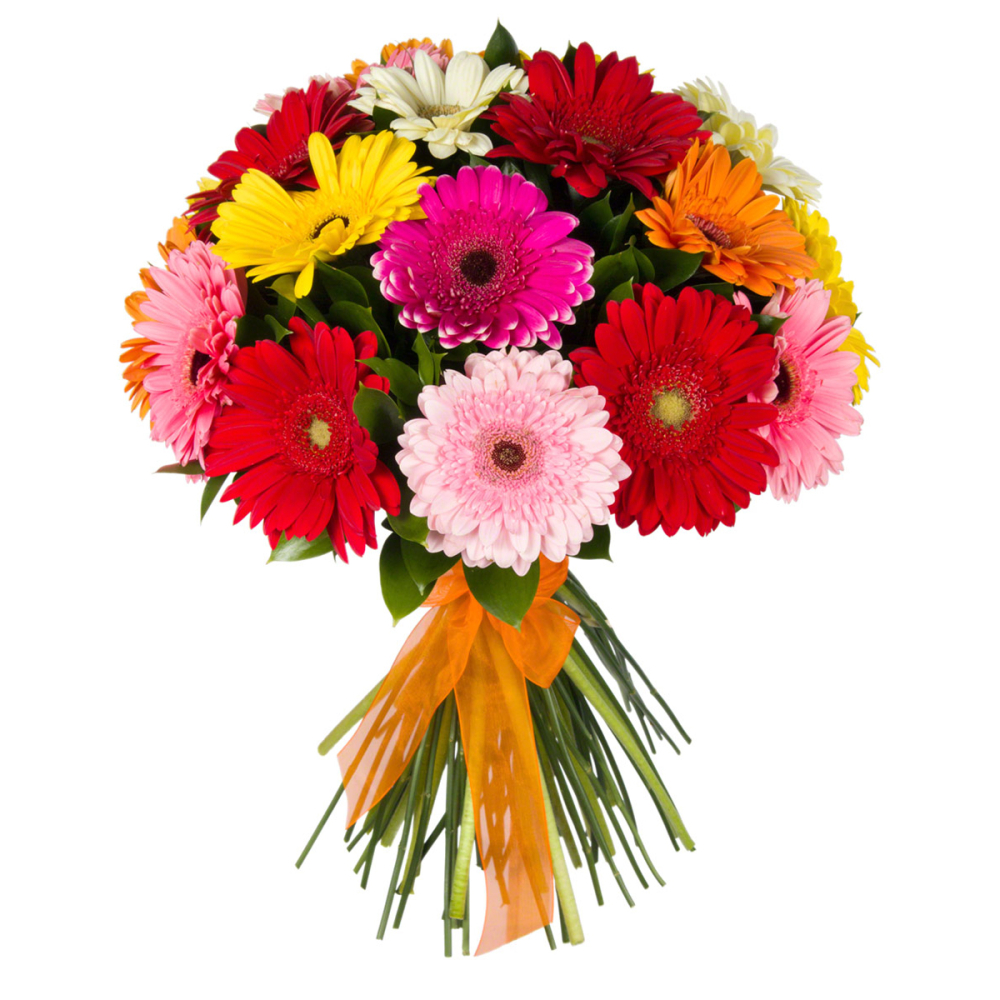 Яркий букет «Мамба» — это смелая комбинация оранжевых, лиловых, желтых и розовых гербер, создающая эффект цветочного гобелена. Идеально подходит для подарка креативным людям и украшения интерьера. Купить герберы Чаплыгин.